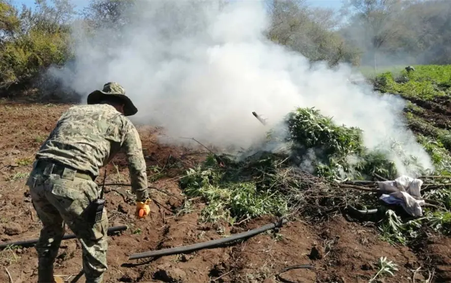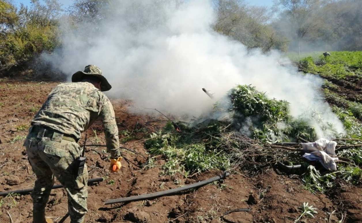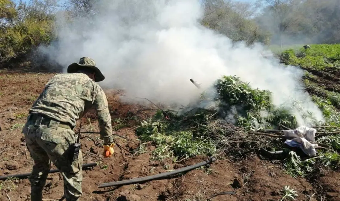 Dos días después de este hallazgo, personal militar localizó en la zona de San Francisco del Caimán, en el municipio de Escuinapa, una superficie de casi tres mil metros cuadrados de siembras de marihuana.