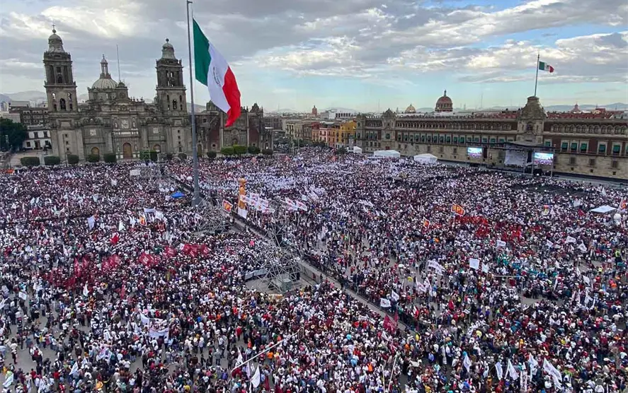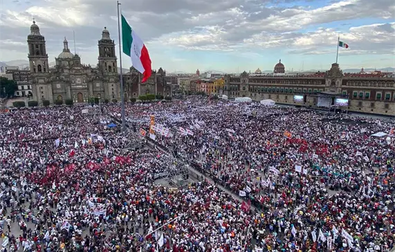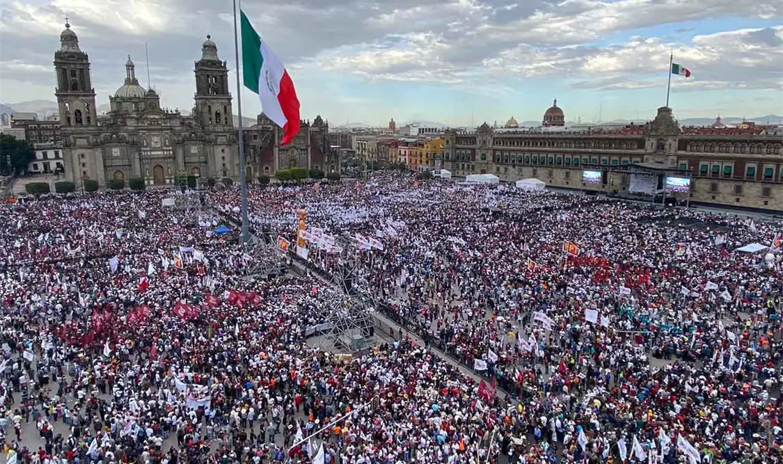 Esto incluye a los asistentes que se encontraban en las calles de Pino Suárez, Francisco I. Madero, 20 de Noviembre y 16 de Septiembre, hasta donde se congregaron para arropar al jefe del Ejecutivo durante su tercer informe este miércoles. En menos de una hora, el aforo pasó de 150 mil a los 200 mil personas, según los reportes.
