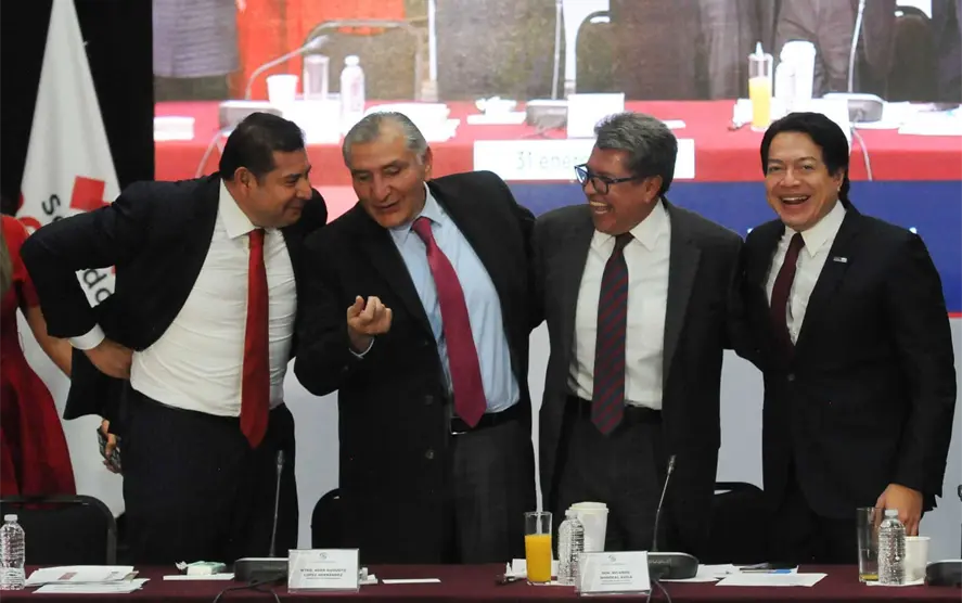México.- La reunión plenaria de los senadores de Morena inició la mañana de este martes con la presencia del secretario de Gobernación (Segob), Adán Augusto López, y del líder nacional del partido, Mario Delgado, quienes expusieron ante los legisladores las prioridades legislativas del Gobierno Federal y la estrategia del partido ante el proceso electoral de 2023 y 2024.