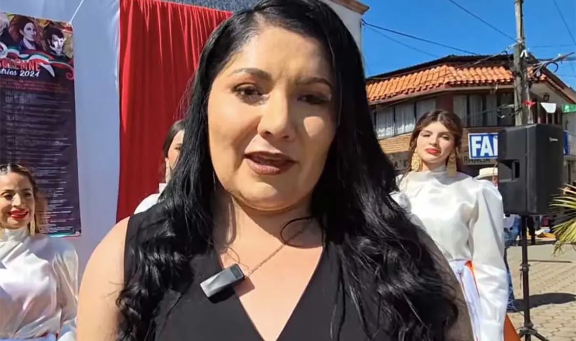 Anabel Ávila Castrejón, quien homenajeó al líder del Cártel Jalisco Nueva Generación (CJNG), Nemesio Oseguera Cervantes, “El Mencho”, en el marco del 193 aniversario del municipio de Coalcomán, Michoacán.