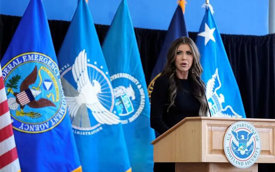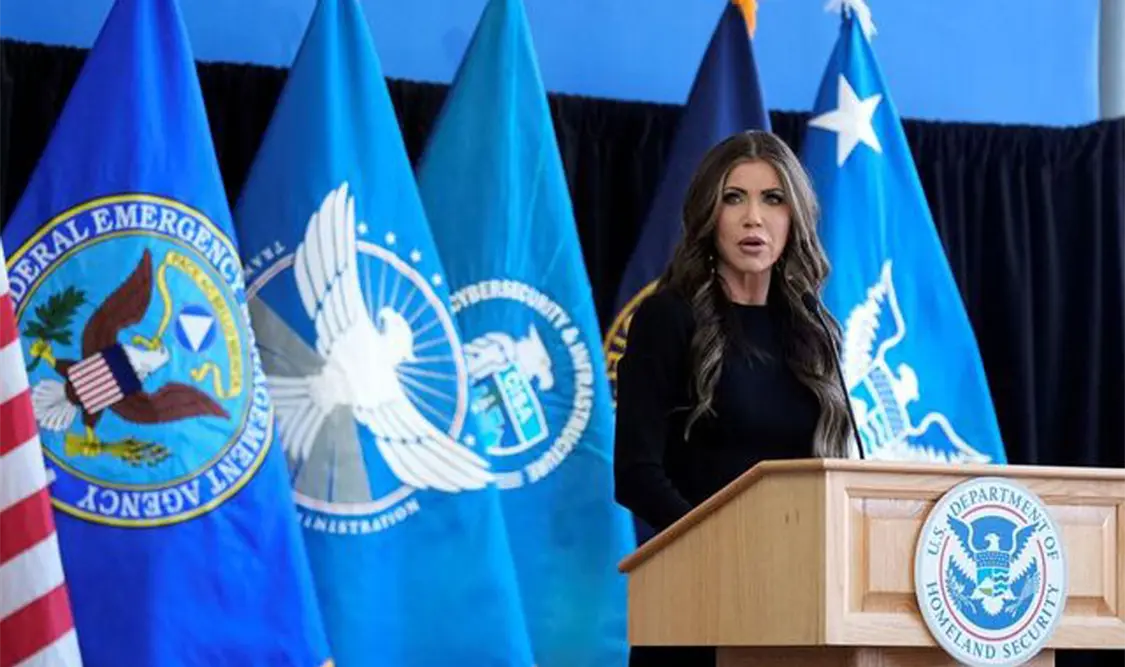 “Gracias, presidente Donald Trump por asegurar nuestra frontera y poner a Estados Unidos primero”, expresa Noem en el video compartido en redes sociales.