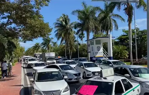 El lunes por la mañana más de un centenar de unidades de taxistas de Cancún bloquearon la entrada vehicular a la zona hotelera y su salida durante poco más de una hora; sin embargo, la llegada de elementos de la Guardia Nacional (GN) y de la Secretaría de Marina (Semar) y el apercibimiento hecho por las autoridades locales les obligó a disuadir su protesta y retirarse para evitar un conflicto como el del pasado 19 de enero, cuando taxistas de Cancún agredieron y detuvieron a algunos conductores de aplicación que estaban en pleno servicio, con turistas a bordo, cuando fueron rodeados por varias unidades de taxi que les cerraron el paso, bajaron a los usuarios, amenazaron y golpearon a los conductores.