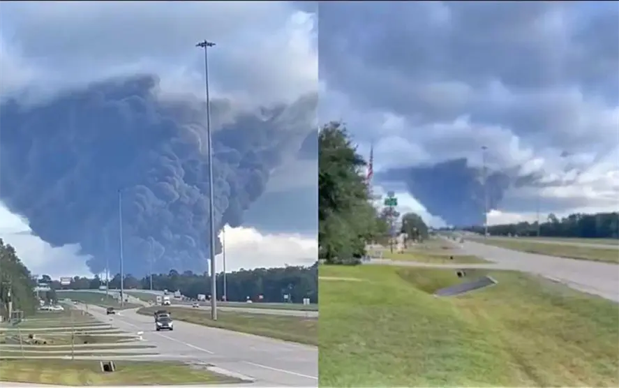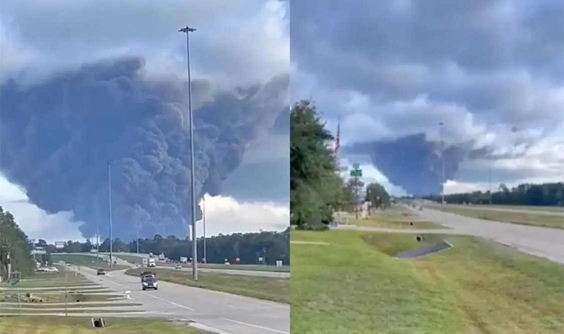 Una explosión desató un gran incendio en una planta química en Shepherd, Texas, enviando enormes columnas de humo negro hacia el cielo.