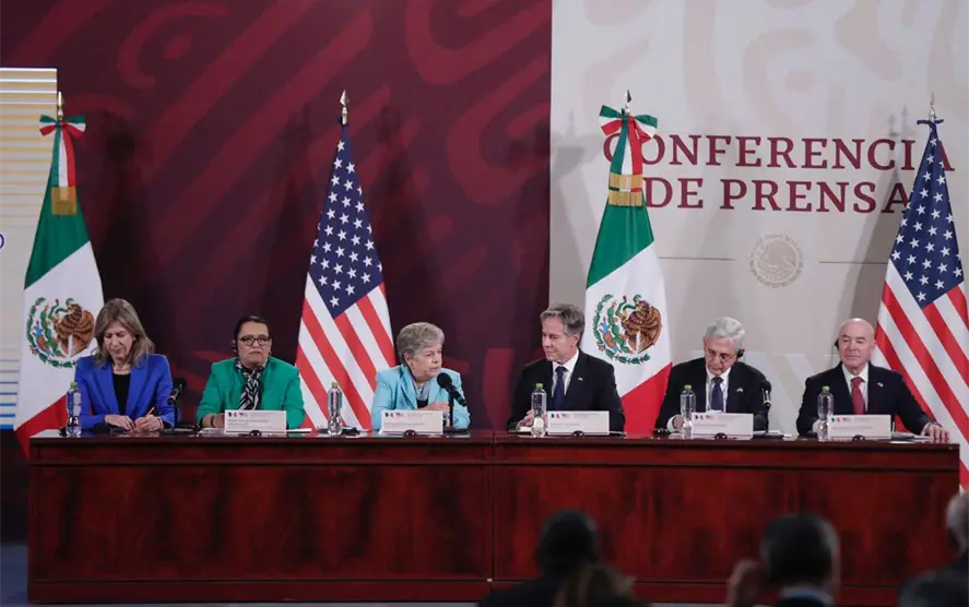 En conferencia de prensa, tras el Diálogo de Alto Nivel de Seguridad entre México y Estados Unidos, la canciller aseguró que durante el encuentro celebrado en Palacio Nacional con la delegación estadounidense encabezada por el secretario de Estado, Antony Blinken, expresaron su preocupación sobre la determinación del presidente Biden, porque, señaló, en México “creemos en los puentes, y no en los muros”.