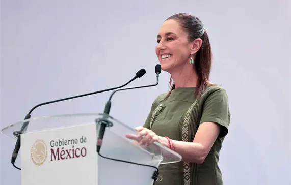 La jefa del Ejecutivo federal resaltó los logros de la Cuarta Transformación de la vida pública de México: 13.5 millones de mexicanos salieron de la pobreza; 32 millones de familias reciben de manera directa los programas y becas para el Bienestar, que ahora son derechos establecidos en la Constitución Política; el salario mínimo aumentó 125 %; no hay inflación; el peso está sólido y se registra récord histórico en Inversión Extranjera Directa (IED).