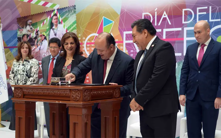 La directora general del Servicio Postal Mexicano–Correos de México, Elena Tanus Meouchi, dio la bienvenida a las y los trabajadores del Sepomex y transmitió el mensaje de felicitación del presidente Peña Nieto.