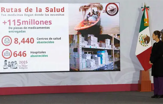 En la conferencia mañanera de la presidenta Claudia Sheinbaum Pardo de este martes 16 de diciembre en Palacio Nacional, Svarch apuntó que se trata de una "cifra histórica" en la entrega de medicamentos en los hospitales y los centros de salud públicos.