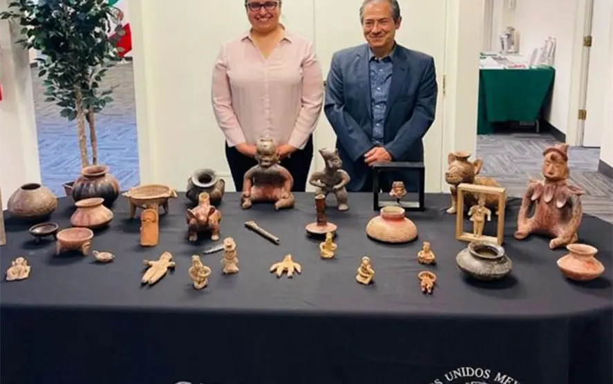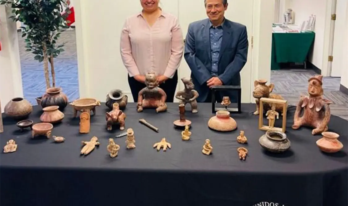 La Secretaría de Relaciones Exteriores (SRE), en coordinación con la Secretaría de Cultura federal y el Instituto Nacional de Antropología e Historia (INAH), recuperó las piezas que fueron entregadas al Consulado de México en Portland, Oregón, por la ciudadana estadounidense Marylou Morton.
