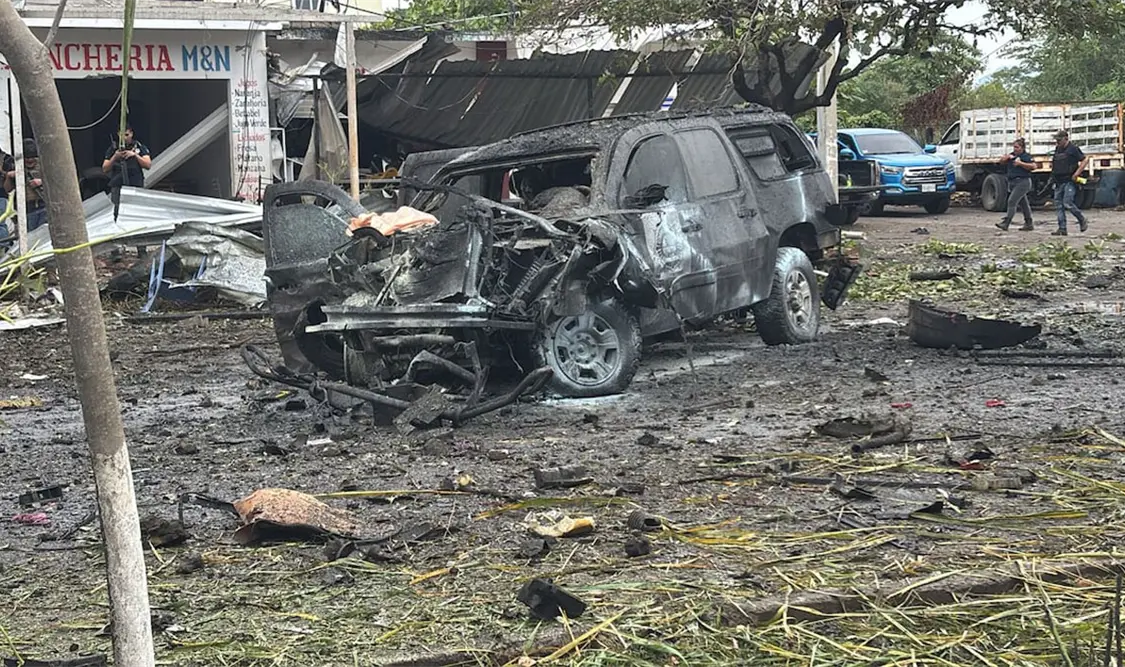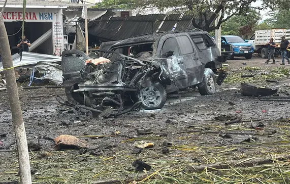 Autoridades locales, confirmaron que minutos antes de las 12:00 horas de ayer sábado, un vehículo con explosivos estalló enfrente de la presidencia municipal, justo afuera de la comandancia de la Policía Comunitaria.