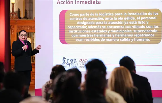 Ante una repatriación de connacionales que se encuentran en territorio estadounidense por órdenes de Donald Trump, la secretaria de Gobernación (Segob), Rosa Icela Rodríguez Velázquez, presentó durante la conferencia matutina de la presidenta Claudia Sheinbaum la primera etapa de la estrategia “México te abraza”, que busca reincorporar migrantes al país mediante el acceso a programas para el Bienestar.