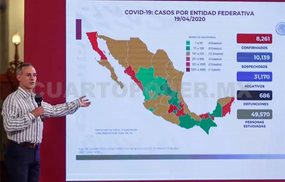 Detalló que además se tienen 10 mil 139 casos sospechosos y 31 mil 170 negativos. La Ciudad de México, el Estado de México y Baja California son los estados con más casos confirmados