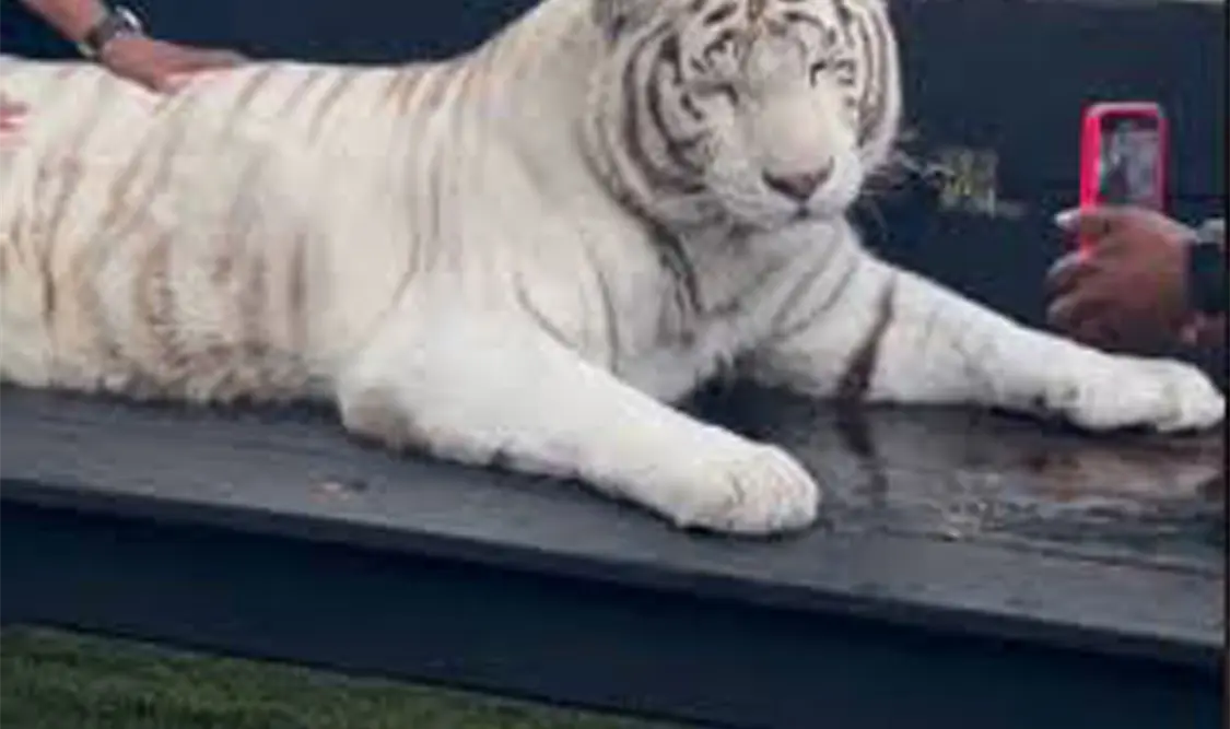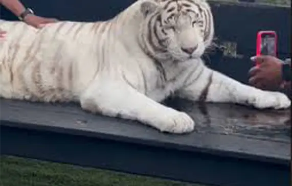 En el video se muestran tres ejemplares de tigre de bengala, entre ellos un cachorro, y un tigre blanco, algunos de ellos se encuentran encadenados y se les ve con poca energía, algunos hasta están dormidos.
