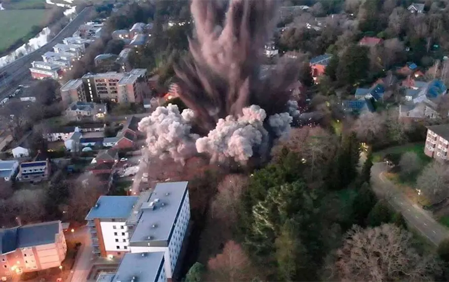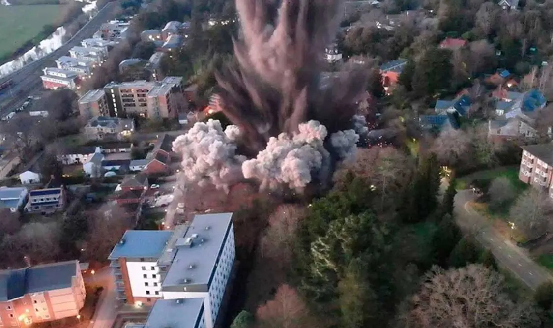 Un cráter del tamaño de un autobús de dos pisos y serios daños estructurales a varias propiedades, dejó la explosión de una bomba de la Segunda Guerra Mundial que fue detonada en la ciudad de Exeter, unos 250 kilómetros al sur de Londres.