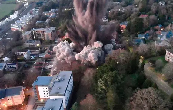 La detonación controlada de la bomba nazi ocurrió a las 18:10 del sábado, y la explosión se escuchó a varios kilómetros de distancia.