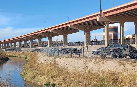Sobre el bordo del río, hacia el poniente de esta ciudad fronteriza se observó cómo este sábado se extendió la seguridad de la Guardia Nacional de Texas y se comenzó a instalar mayor alambre de púas y malla ciclónica.