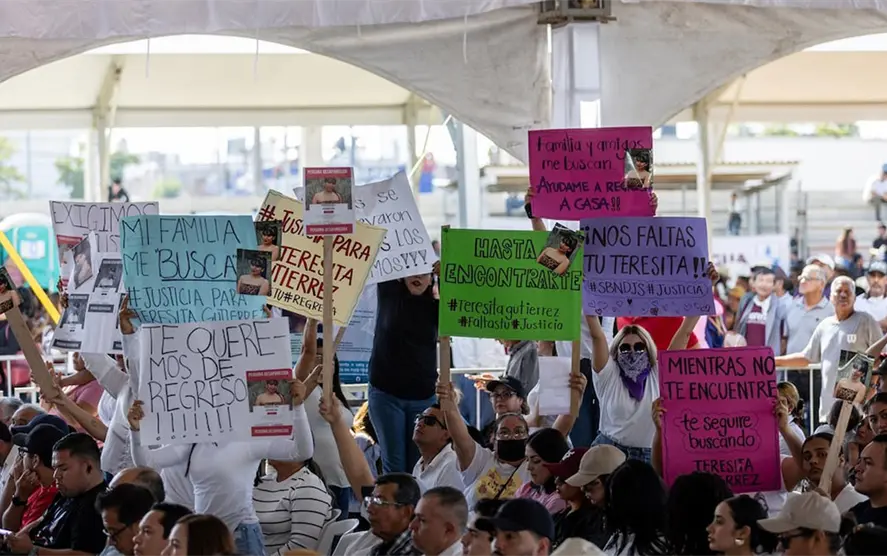 Algunas de las pancartas indican “Justicia”, “Te queremos de regreso”, “Se busca a Teresita”, entre otras.