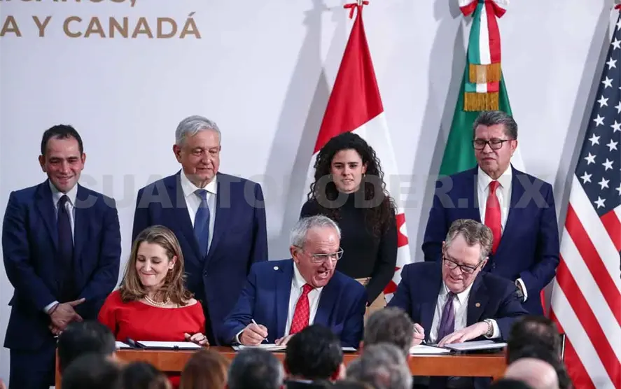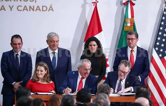 Con el presidente de México, Andrés Manuel López Obrador, como testigo, el acuerdo fue firmado por los negociadores: Jesús Seade (México), Chrystia Freeland (Canadá) y Robert Lighthizer.