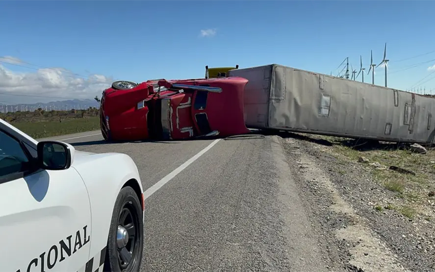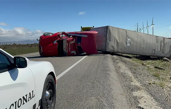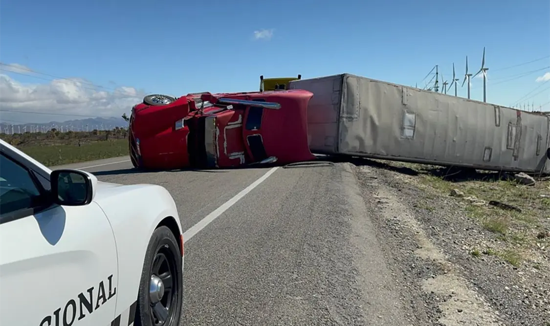 Pese a las restricciones del paso vehicular para tráileres con cajas vacías en las inmediaciones del tramo La Ventosa-La Venta, hubo conductores que no acataron la recomendación. Dos de ellos sufrieron la volcadura de sus pesadas unidades.