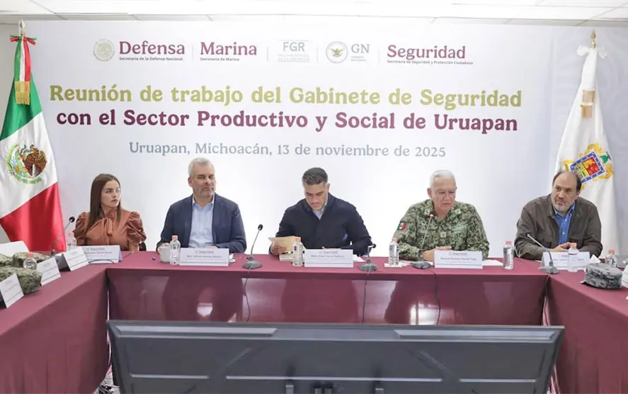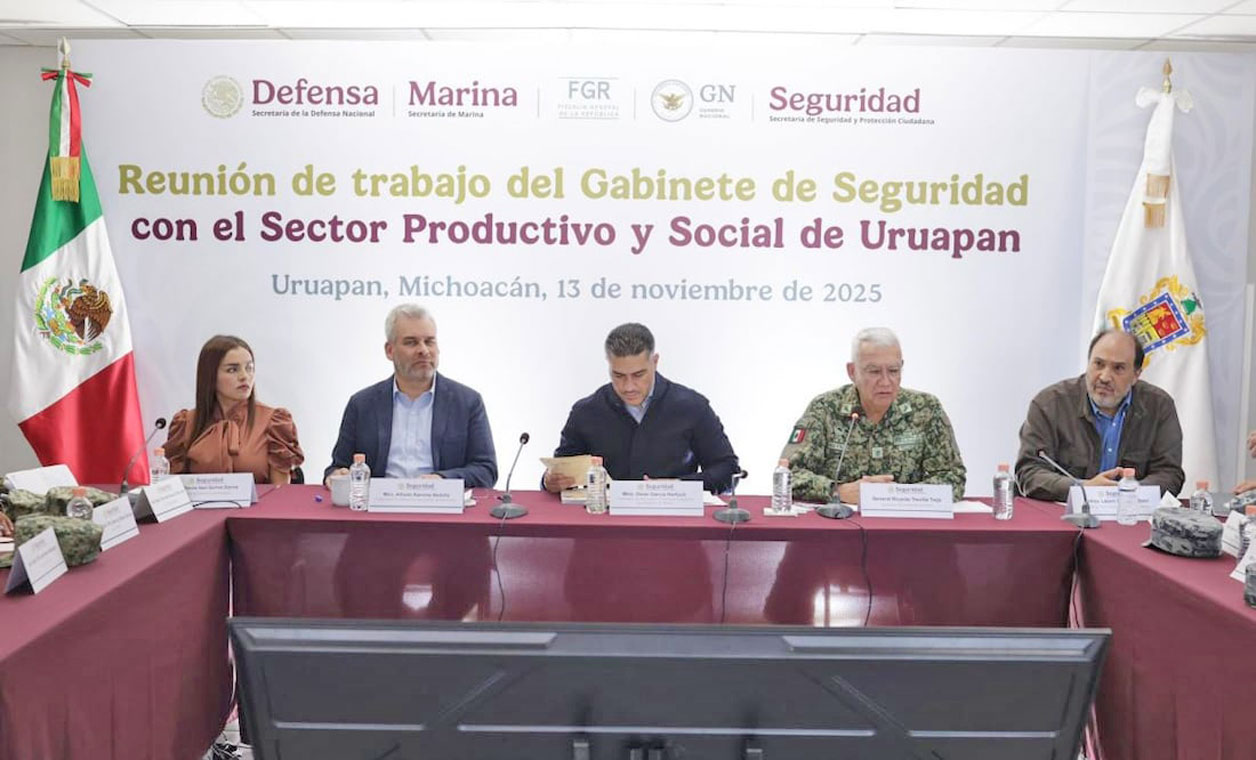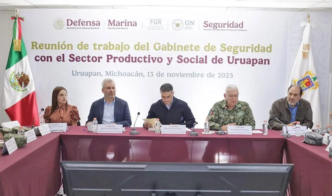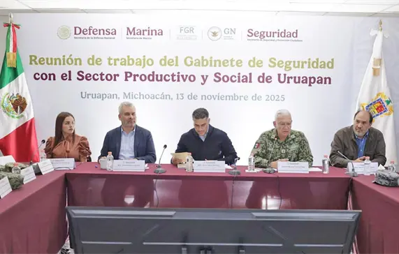 Los titulares del Gabinete de Seguridad sostuvieron en Morelia, Michoacán, una reunión de trabajo en el cuartel de la 21a. Zona Militar, junto con el gobernador Alfredo Ramírez Bedolla, autoridades municipales, legisladores y representantes del sector productivo, para revisar avances y reforzar la estrategia de seguridad en la entidad.