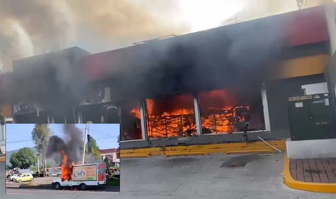La quema de vehículos, establecimientos comerciales y tiendas de conveniencia se extendió a la ciudad de Uruapan, ya que inició en Apatzingán, Michoacán.