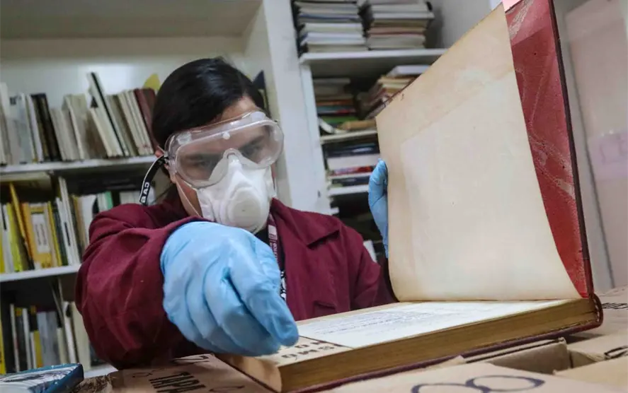 En la sede del archivo en Copilco Universidad, personal del AGN se encuentra trabajando para trasladar todos los elementos que lo conforman una vez finalicen los trabajos de evaluación y registro.