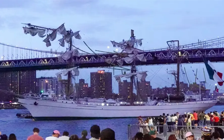 Al intentar zarpar como parte del Crucero de Instrucción “Consolidación de la Independencia de México 2025”, la embarcación impactó con el emblemático puente de Brooklyn, una de las estructuras más representativas de la ciudad estadounidense.