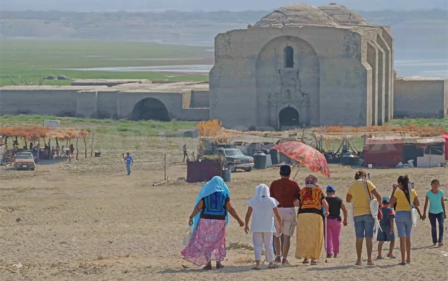 Mientras la sequía está matando al ganado y los productores pierden sus cultivos, los pescadores al aún no recibir el apoyo que el gobierno estatal les prometió por la crisis sacan provecho a la situación del templo.