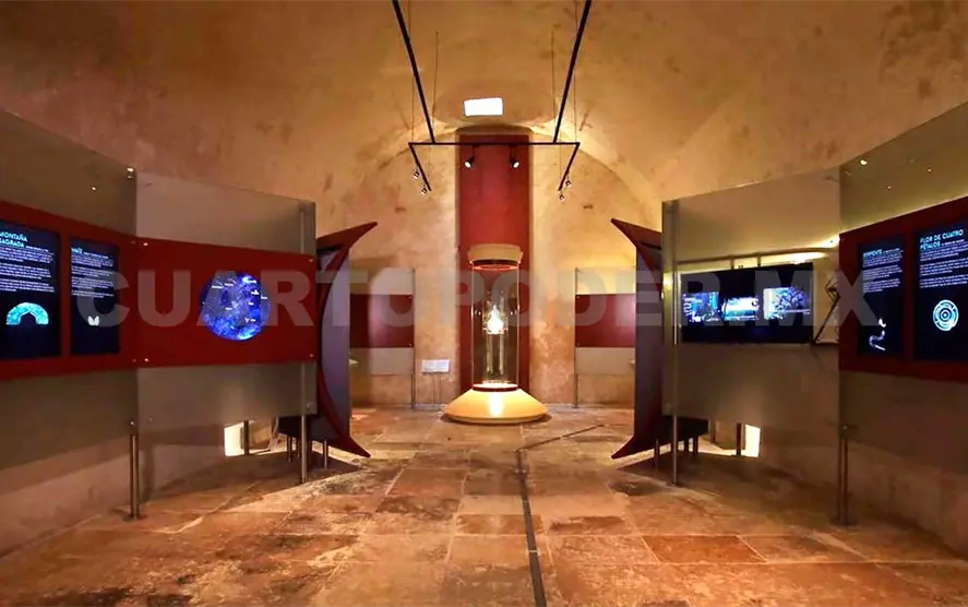 “La sala cuenta con ocho cédulas digitales y dos videos animados para explicar la máscara en su relación con la cosmovisión de los antiguos mayas, así como con un par de estaciones táctiles con la reproducción 1:1 de la misma y cuatro distintos tipos de jade”, describió Pilar Cuairán.