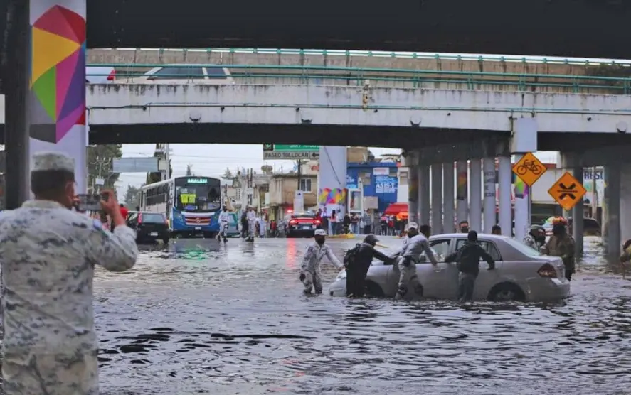 En Ecatepec las lluvias han provocado inundaciones en zonas como Jardines de Morelos, la avenida Insurgentes, así como zonas aledañas a la Sierra de Guadalupe. Por esta razón, un equipo de más de 300 trabajadores de la Marina y Protección Civil se ha desplegado para ayudar a los afectados.