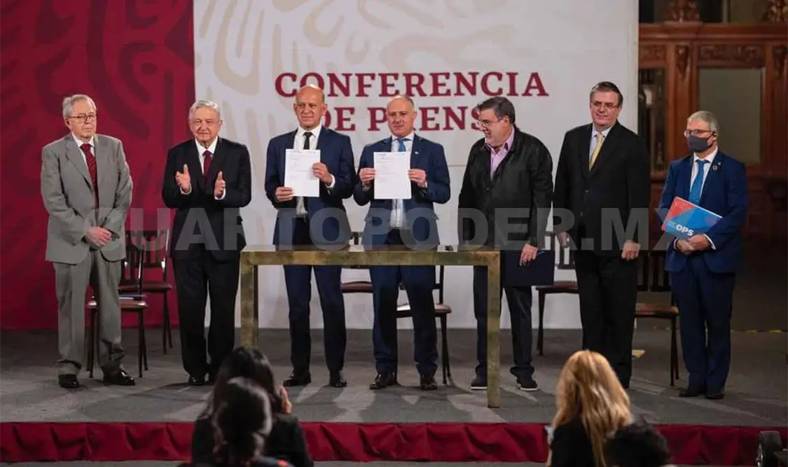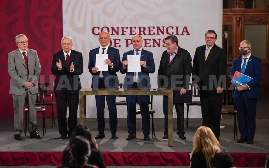 En su conferencia de presa, López Obrador celebró el acuerdo al señalar que este es un día muy importante para garantizar el derecho a la salud del pueblo de México.