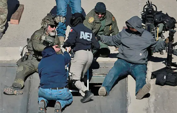 Los agentes de la Guardia Nacional de Texas abrieron unas puertas de alcantarillado y drenaje de El Paso, que está sobre el bordo del río Bravo pegado al muro fronterizo en la unión americana.