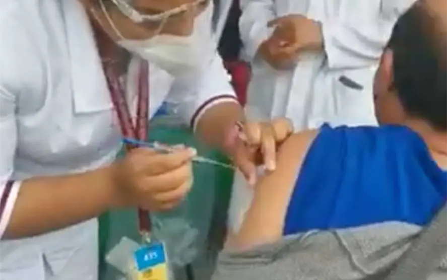La enfermera que aplicó la inyección fue retirada y el Instituto Mexicano del Seguro Social (IMSS) reconoció el error y se disculpó, después de que un video publicado por una familiar del adulto mayor que lo grabó todo se hizo viral. El paciente recibió la vacuna minutos después.