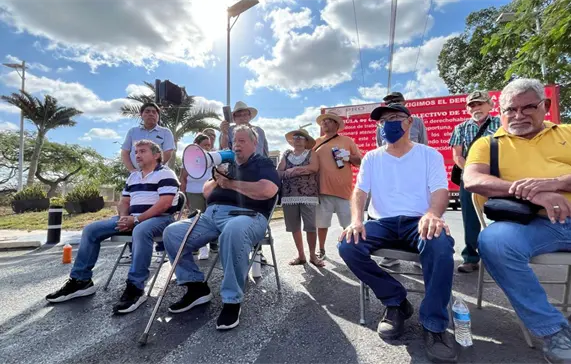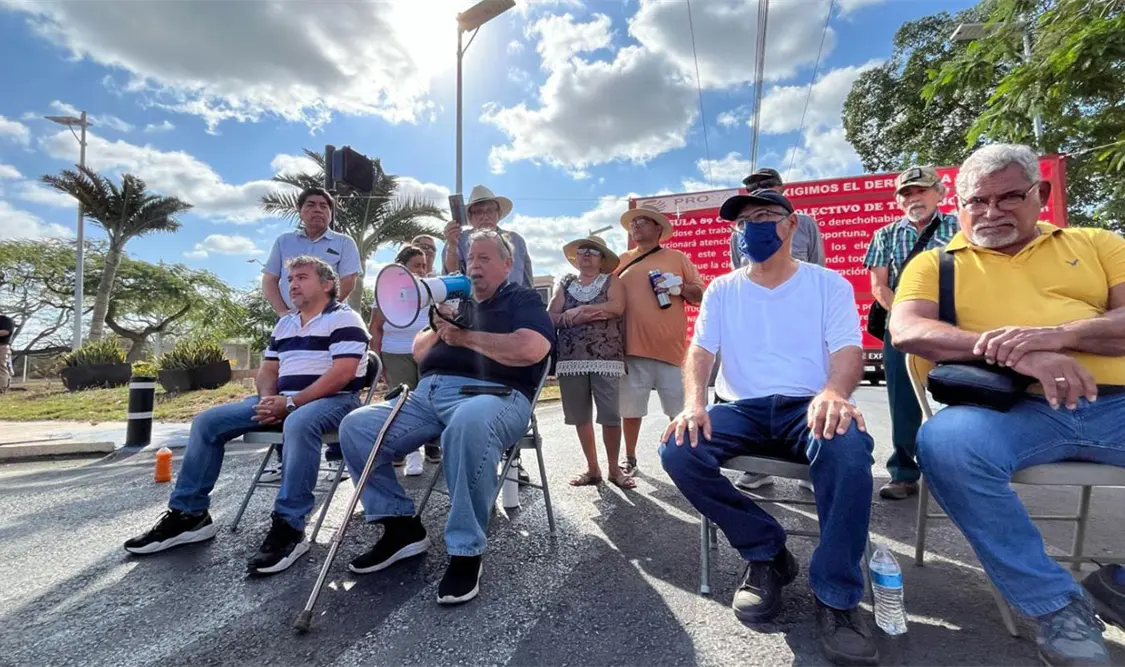 Ayer martes, trabajadores jubilados de Petróleos Mexicanos (Pemex) bloquearon el acceso principal al Aeropuerto Internacional de Mérida para protestar por la falta de medicamentos y atención médica desde hace varios meses.