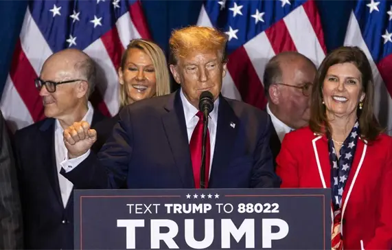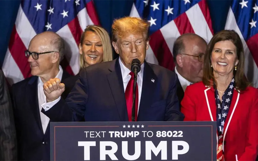 En total, el favorito para la presidencia republicana y sus coacusados deben más de 465 millones de dólares al estado.
