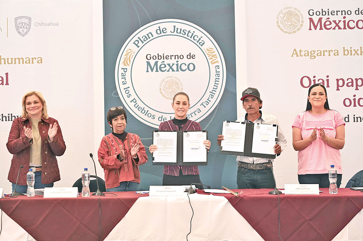 Como parte del Plan de Justicia de los Pueblos de la Sierra Tarahumara en Chihuahua, la presidenta Claudia Sheinbaum Pardo encabezó la entrega de más de 3 mil hectáreas para el pueblo ódami, que fue despojado de sus tierras y que hoy reciben justicia territorial en el Segundo Piso de la Cuarta Transformación.