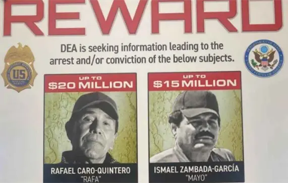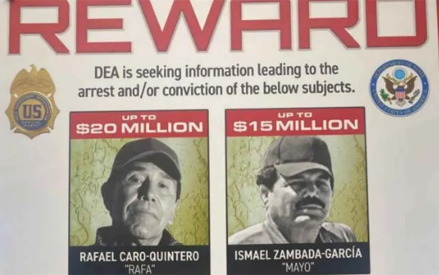 Algunos de los criminales buscados son Rafael Caro Quintero, fundador del Cártel de Guadalajara; Ismael “Mayo” Zambada, fundador y actual líder del Cártel de Sinaloa, así como los hijos de Joaquín “El Chapo” Guzmán, Iván Archivaldo y Jesús Alfredo Guzmán, “Los Chapitos”, quienes se suman a su hermano Ovidio Guzmán, liberado por las autoridades mexicanas en 2019 tras un operativo fallido, y por quien la dependencia ofrece cinco millones de dólares.