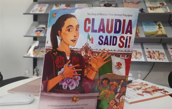 La presidenta de México es la protagonista de Claudia Said Sí! The Story of Mexico’s First Woman President, un libro aún improvisado, pues no se ha imprimido. La caricatura de la presidenta, posando con Palacio Nacional de fondo y junto a personas que ondean la bandera de México se alcanzó a asomar entre los mil 500 stands participantes de la feria.