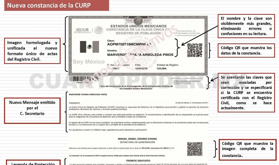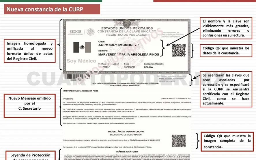 En el salón Revolución de la Secretaría de Gobernación (Segob), precisó que más que hacer una renovación estética, se trata de un avance sustantivo para afianzar a la Clave Única del Registro de Población (CURP) como una llave de acceso a todos los puntos de contacto entre la ciudadanía y la Administración Pública.