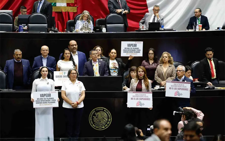 El pleno de la Cámara de Diputados aprobó en lo general, por 324 votos a favor y 129 en contra, imponer de uno a ocho años de prisión y multa equivalente de 100 a dos mil veces (226 mil 280 pesos) el valor diario de la Unidad de Medida y Actualización (UMA) a quien fabrique o venda cigarrillos electrónicos o vapeadores.