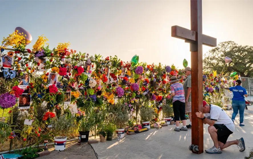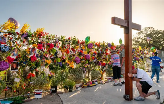 Familiares de víctimas de las inundaciones, ocurridas el fin de semana pasado, han instalado un memorial improvisado a orillas del río Guadalupe en Kerville.