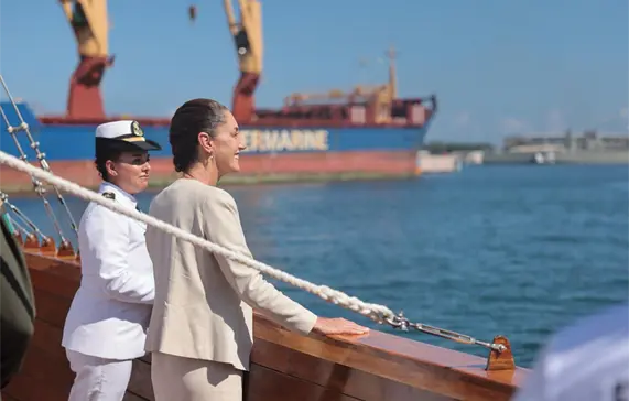En el marco de los festejos por el Bicentenario de la consolidación de la Independencia en el mar, la Mandataria encabezó este domingo una ceremonia en el velero insignia de la Secretaría de Marina (Semar), en la que el capitán Víctor Molina Pérez, comandante del navío, le rindió el parte de novedades del crucero de instrucción 2025.