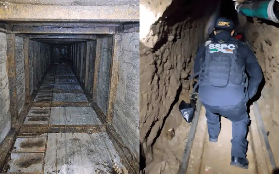 El titular de la Secretaría de Seguridad y Protección Ciudadana (SSPC), Omar García Harfuch, informó que en Tijuana, Baja California, localizaron un túnel de aproximadamente 600 metros de longitud que conectaba a México con Estados Unidos, que era utilizado para el trasiego de drogas.