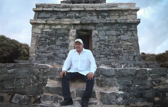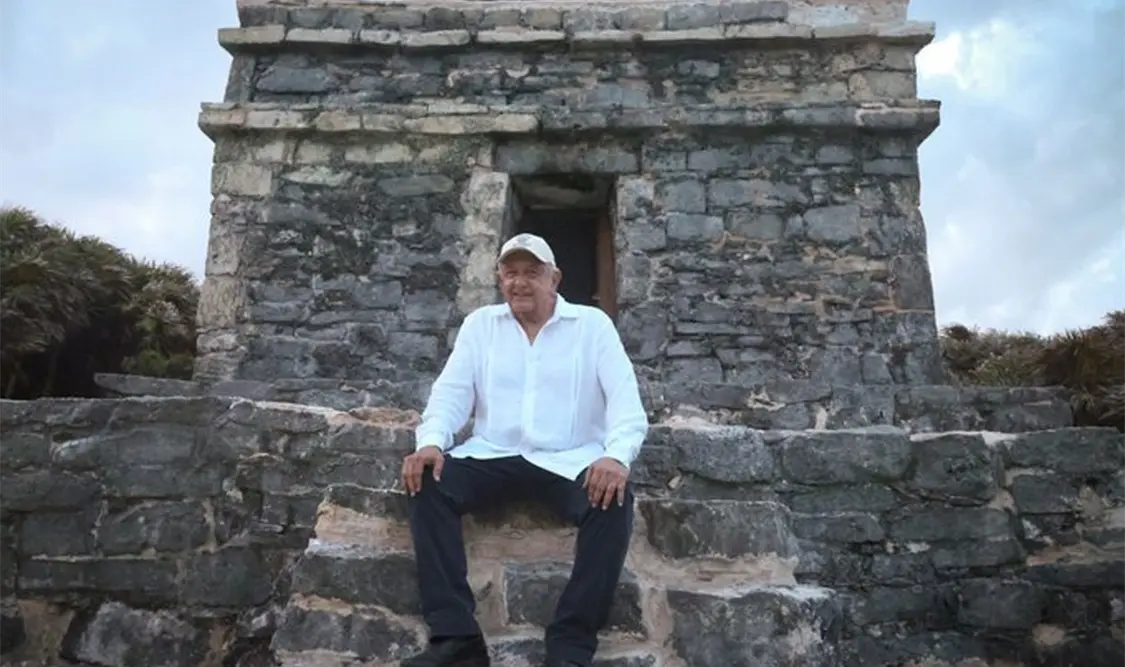 Durante su gira de trabajo por Tulum, Quintana Roo, el mandatario visitó la zona arqueológica y el Parque del Jaguar, zona en la que se han restaurado muchos sitios arqueológicos, como el Templo de cresterías a la orilla del mar.