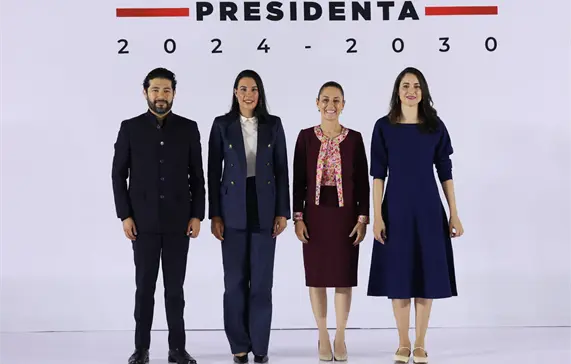 “Este es el gabinete del Gobierno de México que entrará en funciones a partir del próximo 1o. de octubre”, informó la virtual presidenta electa de México, Claudia Sheinbaum Pardo, tras presentar a los próximos titulares de las Secretarías de Cultura, de Turismo y de Trabajo y Previsión Social.