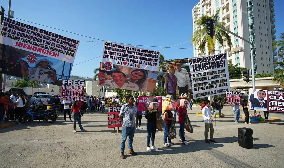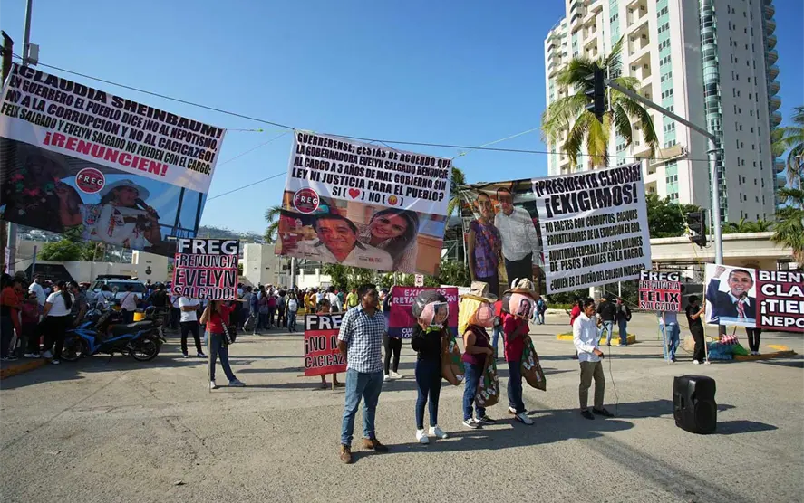 Previo a la reunión del gabinete de seguridad que encabeza la presidenta Claudia Sheinbaum en Acapulco, un grupo de maestros y maestras se manifestó en exigencia a una respuesta sus demandas laborales.