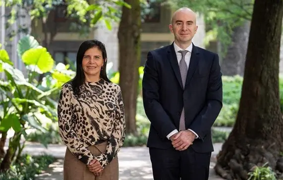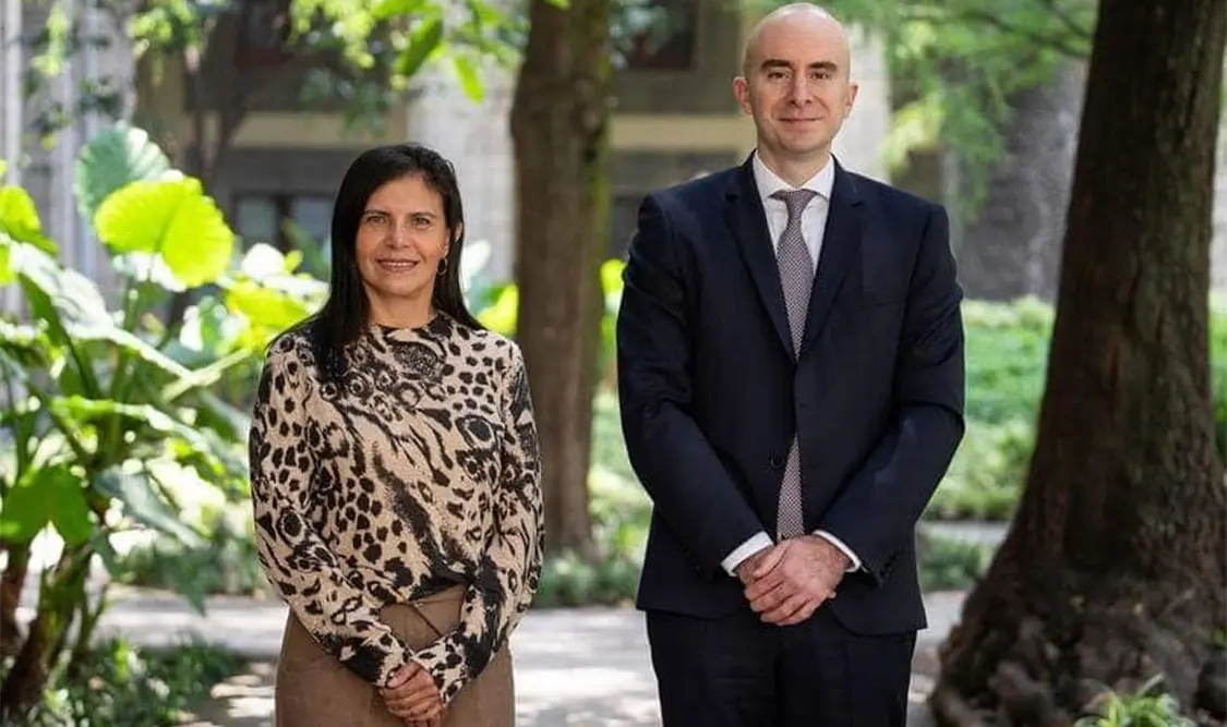 En la red social, Carlos Torres difundió este mensaje acompañado por una fotografía con la nueva delegada en el Patio Nezahualcóyotl de Palacio Nacional.