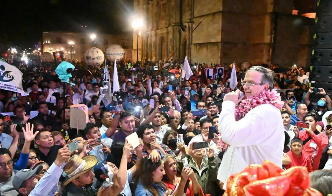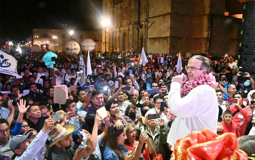 Ebrard participó el viernes en una calenda, una colorida festividad popular que fue organizada en su honor, la cual —a pesar de la copiosa lluvia— congregó a miles de oaxaqueños en las calles de la capital.