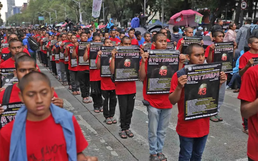 Con motivo de la conmemoración por los 11 años de la desaparición de los 43 normalistas de Ayotzinapa, ayer por la tarde se llevó a cabo una manifestación sobre Paseo de la Reforma, en la Ciudad de México (CDMX) que partió desde el Ángel de la Independencia con rumbo al Zócalo capitalino.