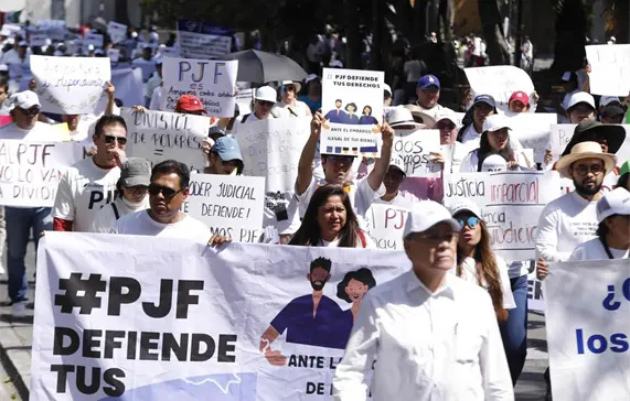 Entre consignas de “Unidad”; “No son privilegios, son nuestros derechos”; “División de poderes” intendentes, oficiales, administrativos, actuarios, secretarios de estudio y cuenta, proyectistas, jueces y magistrados, acompañados de ciudadanos y militantes del PAN y el PRD se movilizaron en la Ciudad de México y otros estados.