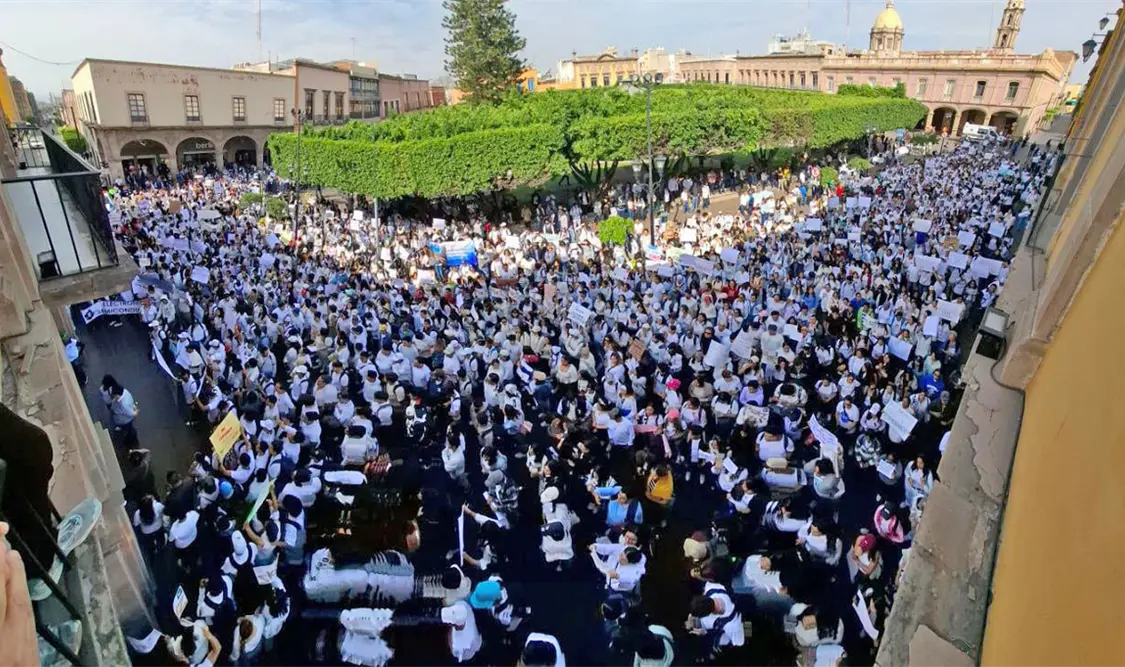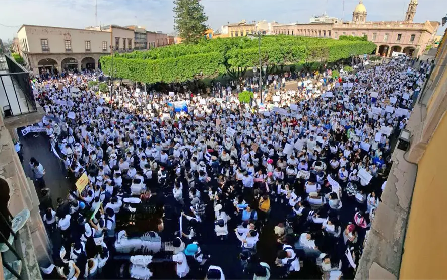 Vestidos con camisas y playeras blancas, llegaron hasta la plaza principal en donde siguieron las consignas:
